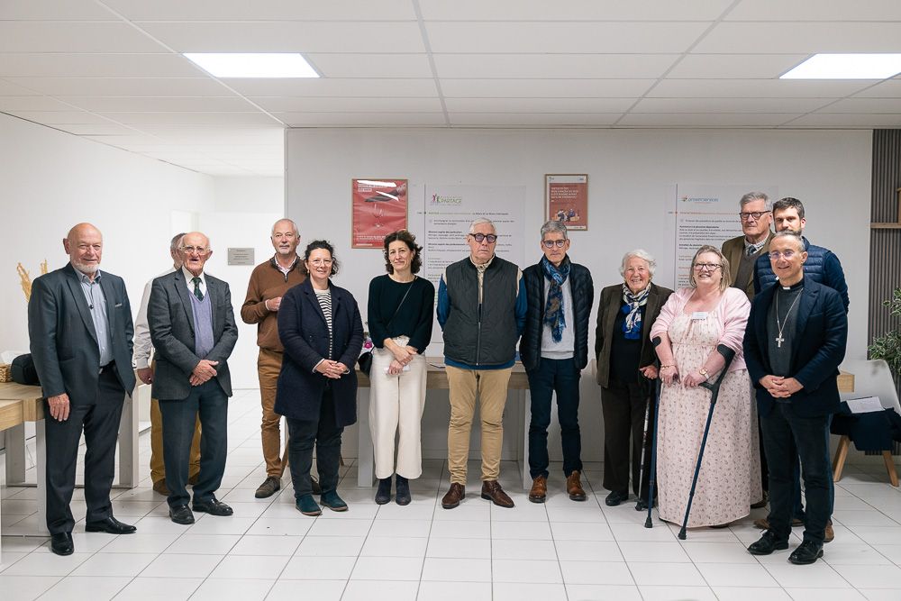 En présence de : Patrick CHABOT, 1er Adjoint en charge de la CULTURE de la mairie de Sargé-lès-le-Mans - Claudio VIOLA, Directeur de Proxim’services - Gerard de SAINT-LAURENT - Gildas BEAURAISIN, Avocat - Christelle VENS, Déléguée départementale - Anne-Sophie HÉBERT, Présidente du Secours Catholique - Yves CALIPPE, président du CCAS - Éric MARCHAND, Conseiller départemental - Brigitte de SAINT-LAURENT, membre fondatrice, membre d’honneur - Sylvie VIOLA, Directrice générale - Pierre SIMUNEK, ancien sous-préfet, conciliateur de justice - Pierre DUCKIT, Président, Responsable organisation en assurance - Monseigneur Jean-Pierre VUILLEMIN, évêque du Mans.