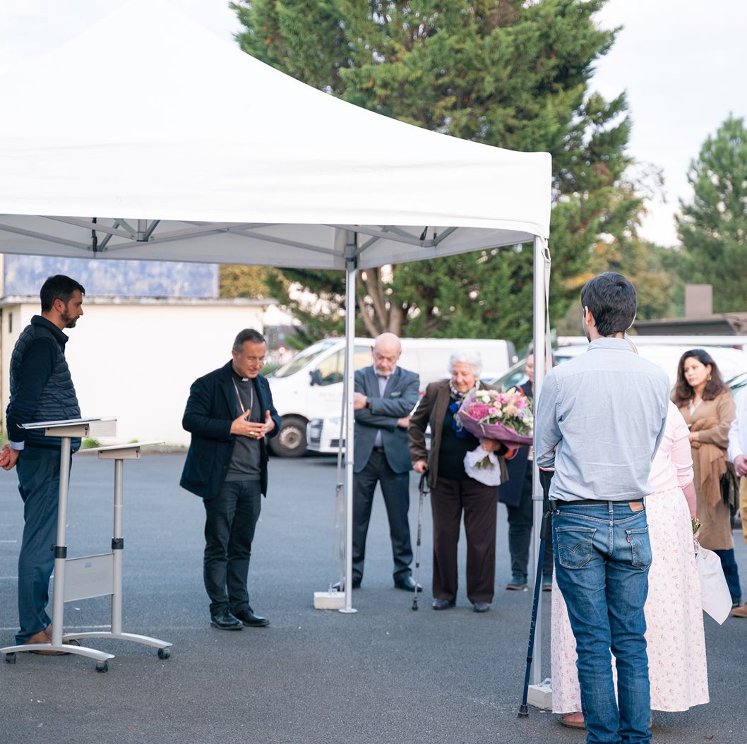 En présence de : Patrick CHABOT, 1er Adjoint en charge de la CULTURE de la mairie de Sargé-lès-le-Mans - Claudio VIOLA, Directeur de Proxim’services - Gerard de SAINT-LAURENT - Gildas BEAURAISIN, Avocat - Christelle VENS, Déléguée départementale - Anne-Sophie HÉBERT, Présidente du Secours Catholique - Yves CALIPPE, président du CCAS - Éric MARCHAND, Conseiller départemental - Brigitte de SAINT-LAURENT, membre fondatrice, membre d’honneur - Sylvie VIOLA, Directrice générale - Pierre SIMUNEK, ancien sous-préfet, conciliateur de justice - Pierre DUCKIT, Président, Responsable organisation en assurance - Monseigneur Jean-Pierre VUILLEMIN, évêque du Mans.
